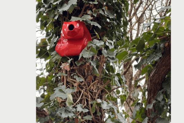 Hoch oben in den Bäumen sind zwei sogenannte Skulpturenbrüter zu entdecken. Die in der Nymphenburger Porzellanmanufaktur modellierten, amorphen, höhlenartigen Formen sind Skulptur und Nistkasten zugleich. Die Performance-Künstlerin Birgit Ramsauer ließ sich von der ihr umgebenden Natur inspirieren. Der feine erhabene Werkstoff Porzellan, die kontrastreichen Farben der Objekte nach der Lehre von Johannes Itten und die scheinbar natürlich gewachsene Form der Skulpturen lassen den Betrachtenden innehalten. Ist ein Vogelpaar eingezogen? Wie verändert sich die Kunst im Laufe der Zeit? Hat die Witterung einen Einfluss? Mit den „Brütern“ verbindet die Künstlerin auf ästhetische und sensible Art und Weise die Natur mit der Kunst und andersherum.