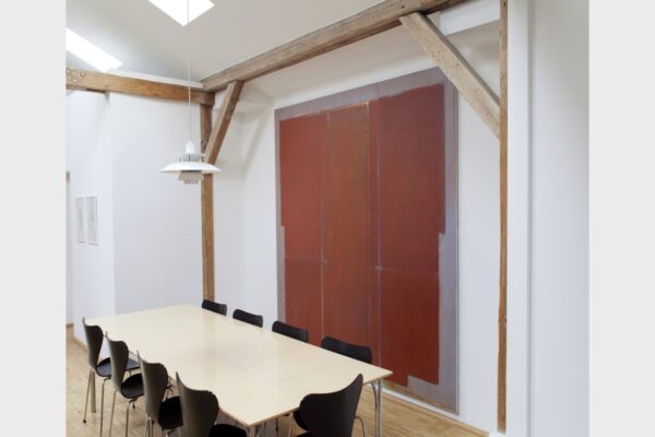 Manfred Mayerle (*1939) lebt und arbeitet in München und in Establiments auf Mallorca. Seine Werke strahlen Ruhe und Klarheit, Kraft und Energie aus. Durch seine Technik des mehrfachen Farbauftrags, des Laufen-Lassens der Farbe und der Einbeziehung des Zeitfaktors bei der Herstellung und Trocknung der Farbflächen steht Mayerle in innovativer gestalterischer Weise der meditativen und spirituellen Aura klösterlicher Arbeit nahe. Weitere Werke Mayerles begegnen im Eingangsbereich des Landeskirchenamts und im großen Sitzungssaal.