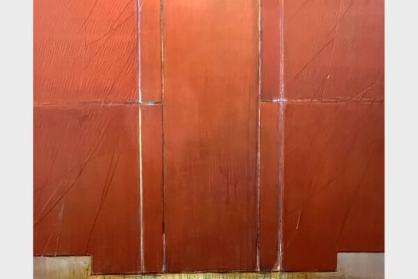 Die Beschäftigung mit dem menschlichen Körper, mit seinen Proportionen, speziell mit dem Torso – einem klassischen künstlerischen Thema – führte Manfred Mayerle in zahlreichen Serien immer näher zu einer völlig abstrahierten Form. So ist diese Arbeit zwar mit „Torso“ betitelt, als solcher jedoch kaum mehr erkennbar. Vielmehr hat sich der Torso zu einer Tau-Form, zu einem Tau-Kreuz hin entwickelt. Auch die vom Künstler gewählte Form des Triptychons erinnert an gängige Darstellungsweisen mittelalterlicher Flügelaltäre. Mehrfache Farbüberzüge, Schraffuren und palimpsestartige Überzeichnungen machen die Fläche tief, lebendig und lassen die Arbeit zu einem begehbaren Farbraum werden. Die Arbeit hing seit ihrem Erwerb 2005 in den Räumen des landeskirchlichen Baureferats, später von 2019 bis 2024 in den Interimsdiensträumen der Abteilung E Gemeinden und Kirchensteuer in der Münchner Löwengrube.