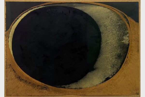 Das Werk „gelber Vulkan“ ist eine Leihgabe von Pfarrer Helmuth Becher, Steppach-Pommersfelden.